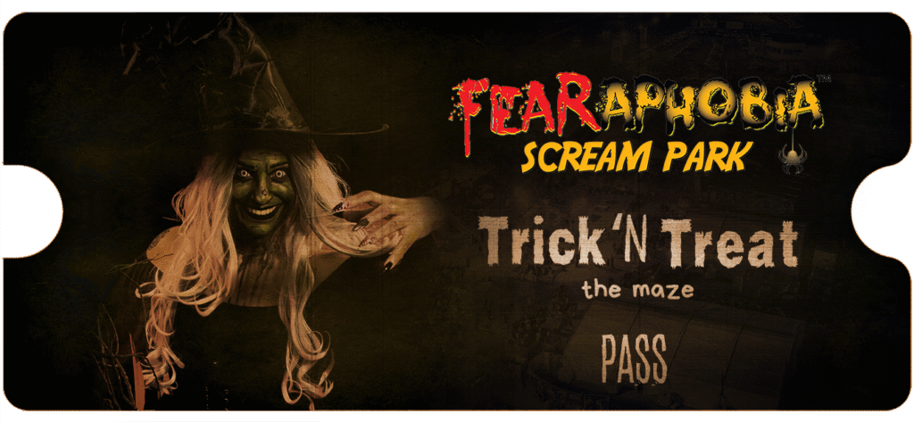 Skip the wait and head straight into the Horror! Includes our 3 Signature Scariest Haunted Houses ever built chock full of everything that will have you screaming all night long! Also our Bonus Trick ‘N’ Treat Halloween Haunt !